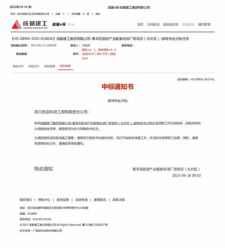 喜报!胜蓝科技中标"青羊区航空产业配套标准厂房项目(北片区)"
